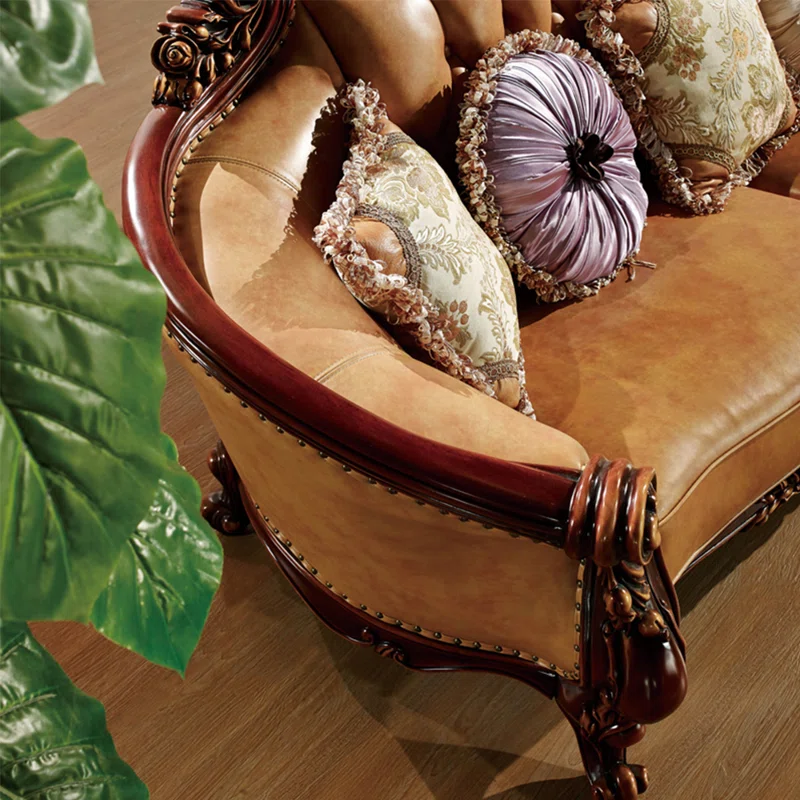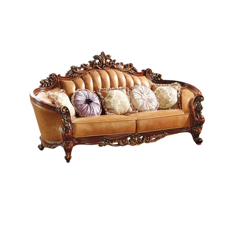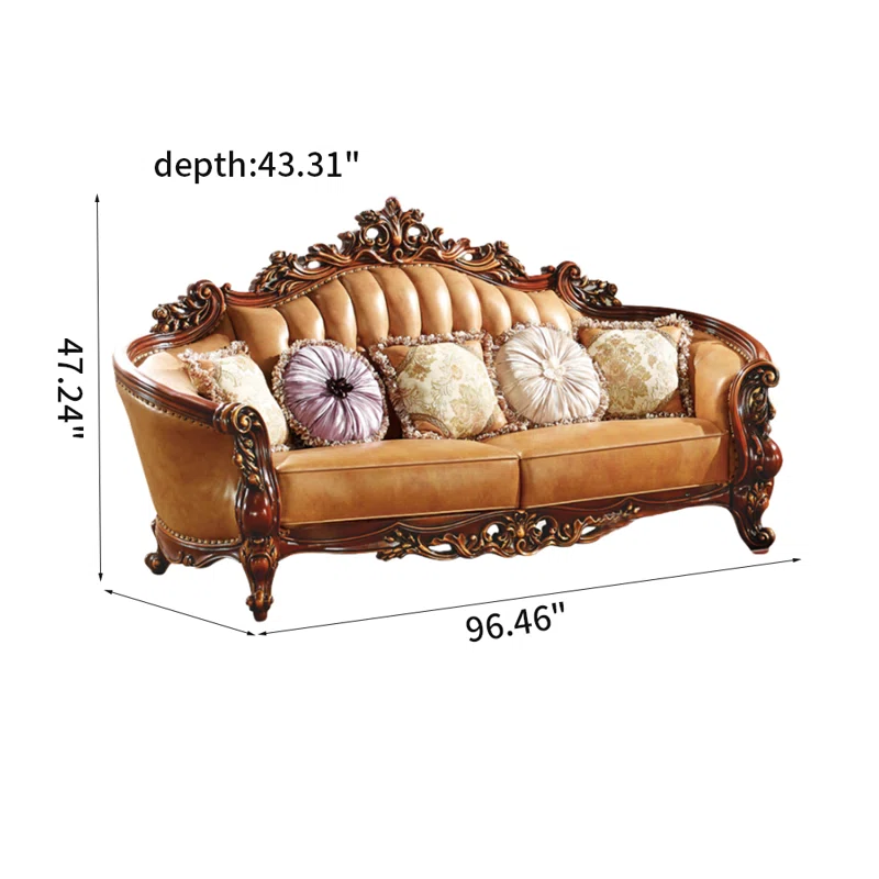 Transform your living space with the stunning European Style Solid Wood Carved Luxury Sofa. Measuring an impressive 96.46 inches, this leather sofa features a high-quality solid wood frame with intricately carved details that showcase timeless European style craftsmanship. The premium leather upholstery offers a sleek and sophisticated look, providing both comfort and elegance to your living room. Perfect for those who appreciate luxury furniture, this leather sofa is designed to blend seamlessly with any upscale home decor. The carved wood details add a touch of grandeur, making it an excellent centerpiece for your home. Whether you’re hosting guests or enjoying a quiet evening, this spacious leather sofa is the perfect combination of luxury and durability.