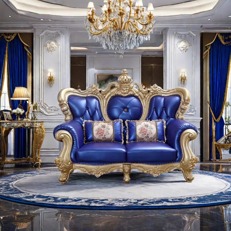 European Style Solid Wood Luxury Sofa 71.65” Upholstered Loveseat