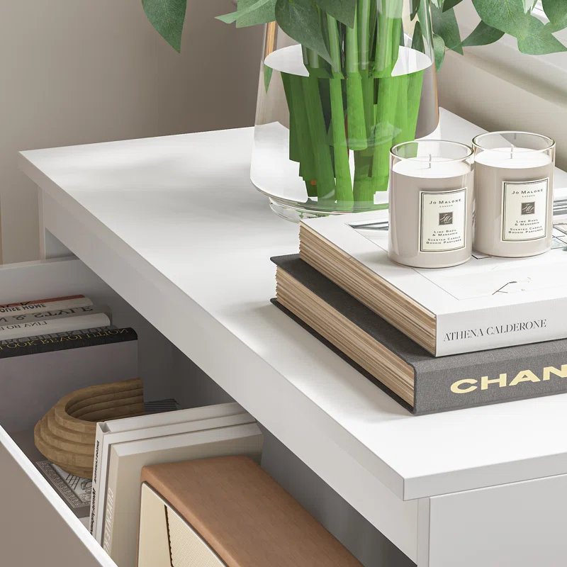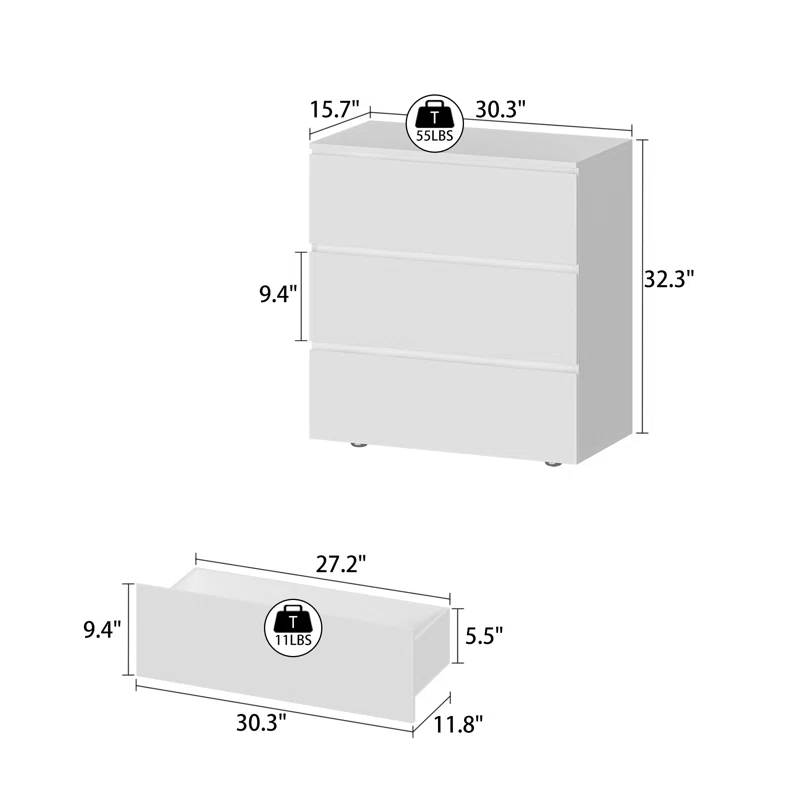 Ideal for anyone in need of a wooden chest or storage chest, the W 3-Drawer Dresser is perfect for small spaces due to its compact yet spacious design. It also serves as a wooden nightstand dresser or a space-saving dresser that complements your home decor. With its elegant dresser style and sleek finish, this functional dresser adds both beauty and organization to any room in your house.